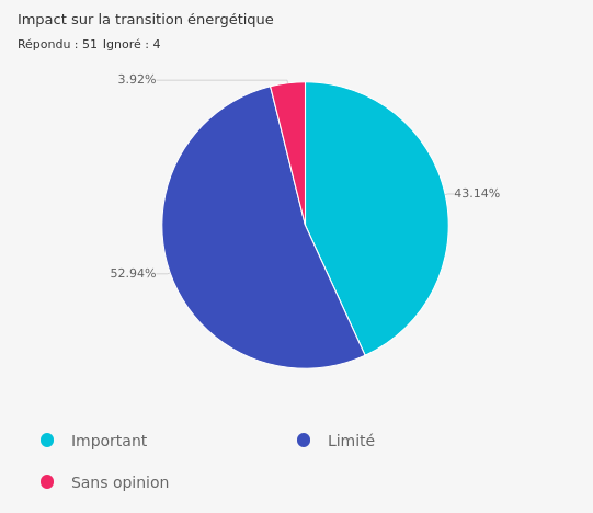 Les répondants sont assez partagés au sujet de l'impact sur la transition énergétique. Pourtant en France, l'engagement de E. Macron ne semble pas faire de doute, indépendamment des cours du pétrole.